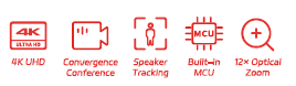 4K All-in-One Endpoint, equipped with 12X lens and high quality 4K CMOS sensor, support dual 4K30 streaming, best choice for enterprise/government collaboration, online health-care, online teaching/learning and conferencing.